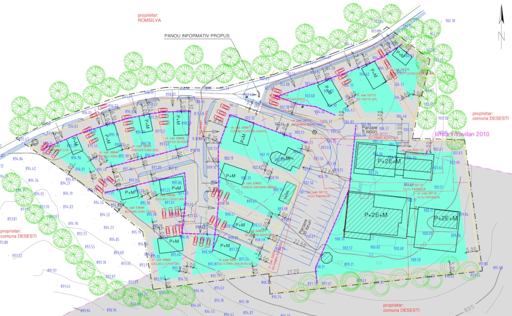Modul aleator de parcelare a cauzat mici probleme pentru dimensionarea corectă a căii de acces. Astfel că a fost necesar ca pentru 6 terenuri adiacente căii de acces să fie propuse corecții ale limitei de proprietate prin cedarea a unor fâșii de teren către domeniul public al comunei Desești. Fâșiile cedate vor avea dimensiuni variabile, cu o lățime de maxim 1,5m. Calea de acces va putea fi corectată pentru a avea un drum cu o singură bandă de 2,75m lățime, acostament lat de 1,00m pe o parte şi 75cm pe cealaltă parte unde e urmat de un şanţ pentru preluarea apelor pluviale pe latura dinspre proprietăţile private (1,00m) şi zonă verde (25cm).