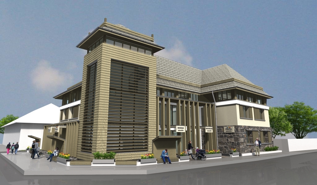 Imaginea exterioară a noii Primări urmărește încadrarea în specificul architectural din Țara Maramureșului: acoperiș în patru ape, cu pante repezi, și învleitoare din draniță, volume simple, material natural (lemn, piatră) și vopsitorii în culori neutre.