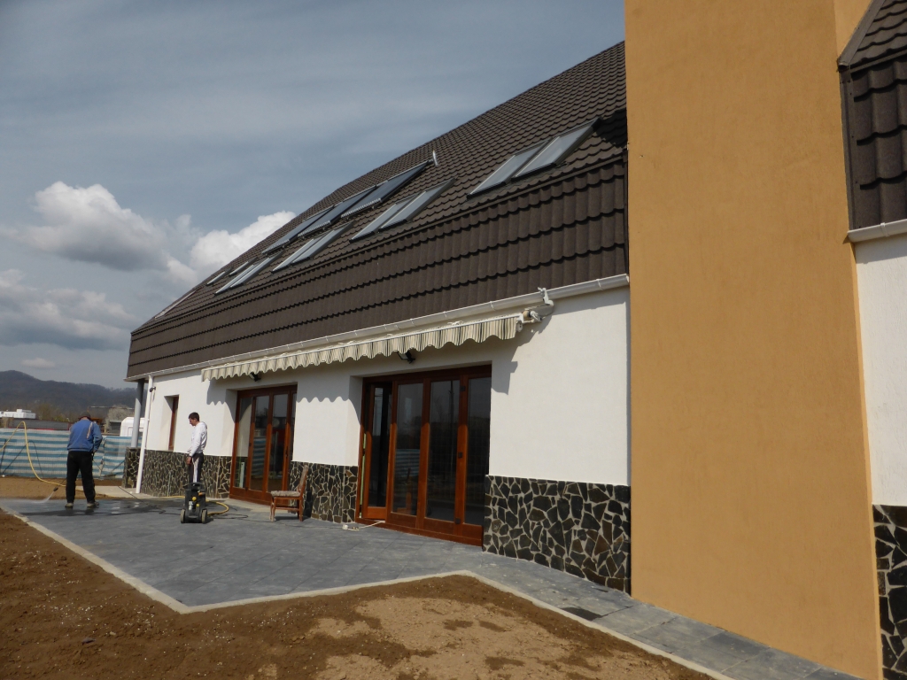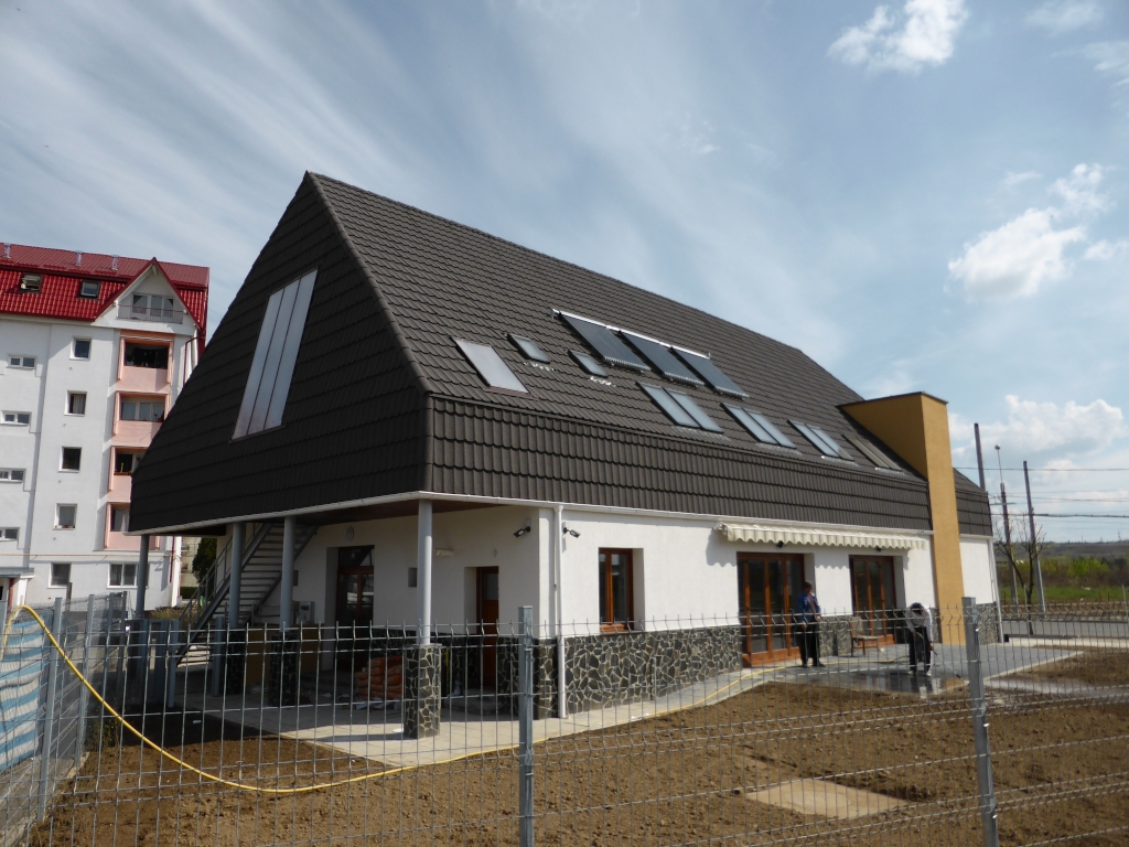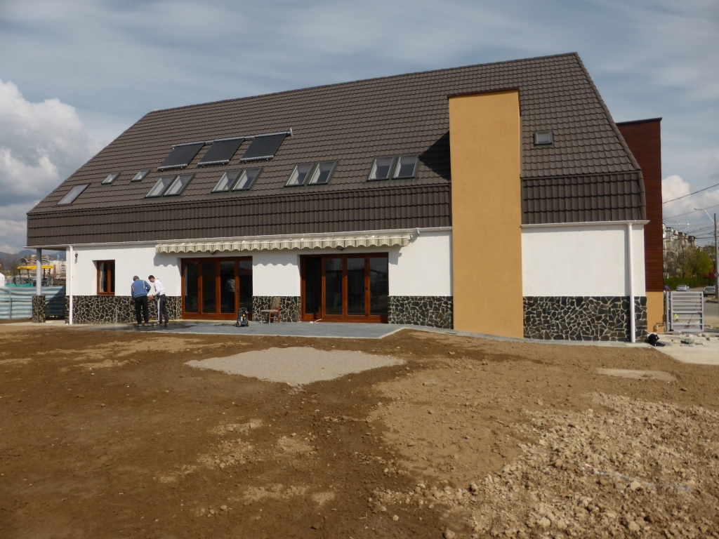 Imaginea exterioară cochetează cu volumetria caselor tradiționale din mediul rural pe care o prelucrează în cheie urbană – situație posibilă din cauza amplasamentului aflat la periferia orașului.