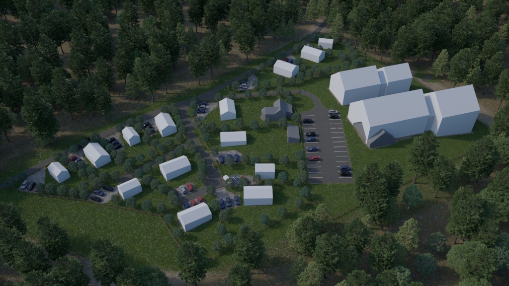 Căsuțele de vacanță vor fi amplasate cu o retragere față de noul aliniament de 5,00m, și 3,00m față de celelalte limite de proprietate. Regimul de înălțime va fi (S+) P+M, cu o înălțime la streașină de 4,00m și panta acoperișului de 50% (cca. 28º).